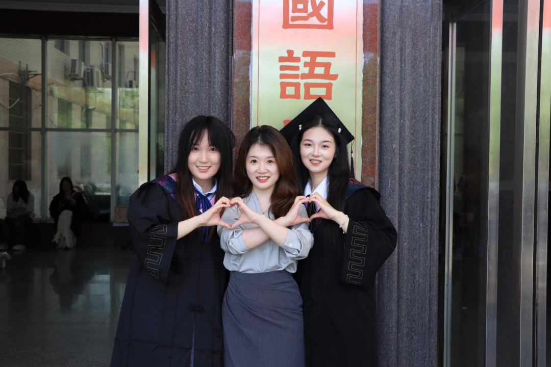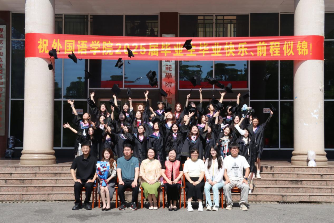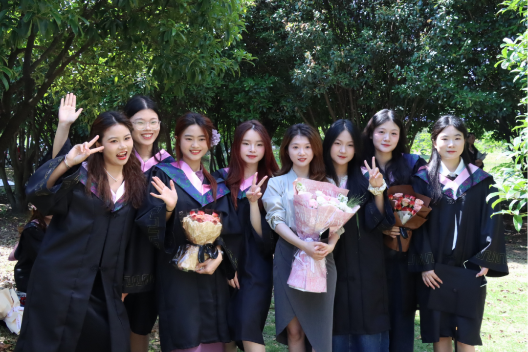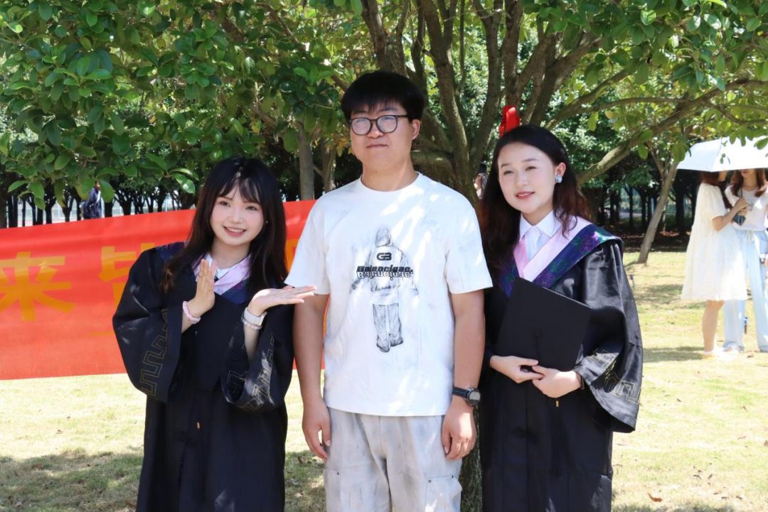 在“光影定格少年时”活动现场,各班毕业生身着整齐的学士服,在外语楼前有序列队。随着摄影师一次次按下快门,学士帽抛向空中的瞬间,毕业生们灿烂的笑容与校园美景定格成永恒。“快帮我和辅导员老师拍张合影!”同学们的声音四周响起,“大学四年,老师就像我们的引路人,这张照片一定要好好珍藏。”无论是与恩师合影留念,还是和同窗摆出搞怪姿势,每一张照片都承载着珍贵的校园回忆,记录下这段独一无二的青春时光。