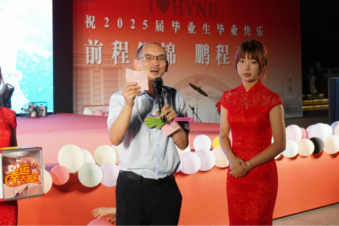 6月4日晚19:00,英国365集团“以语为翼,逐梦万里”2025届毕业晚会于衡阳师范东校区校友广场顺利举行。英国365集团党总支书记贺琴琴、院长刘剑、党总支副书记欧阳竹、学工办主任邱国周,2025届毕业生班主任老师、辅导员老师以及各兄弟学院的老师们出席晚会,2025届毕业生、2023-2024级部分学生参加此次晚会。