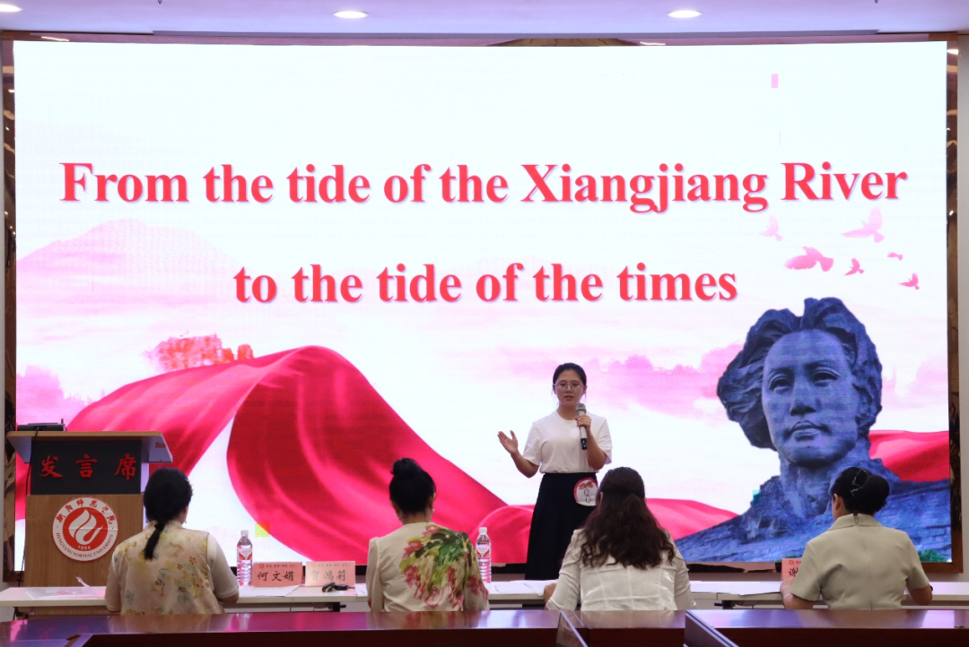 在评委点评环节,谢彩虹对选手表现给予高度肯定:“选手们将个人成长与时代脉搏紧密交织,以流畅英语讲述中国故事,在紧扣‘时代浪潮下的我与中国’主题的同时,既彰显了扎实的语言功底,又传递了深刻的文化思辨。”她表示,此次比赛选手们的演讲深刻诠释了湖湘精神的时代内涵。流畅的表达与严谨的叙事脉络,充分彰显了我校英语教学的扎实成果。同学们围绕时代议题的深度思考,鲜明展现了青年学子的责任担当。此外,谢彩虹针对部分选手演讲稿中存在的语法疏漏及提升临场应变能力提出指导意见,鼓励同学们持续打磨语言艺术,增强中国故事的情感共鸣力与传播感染力。
