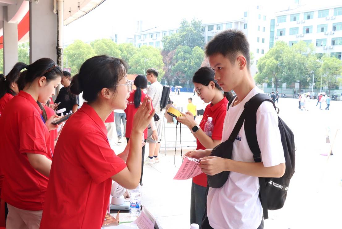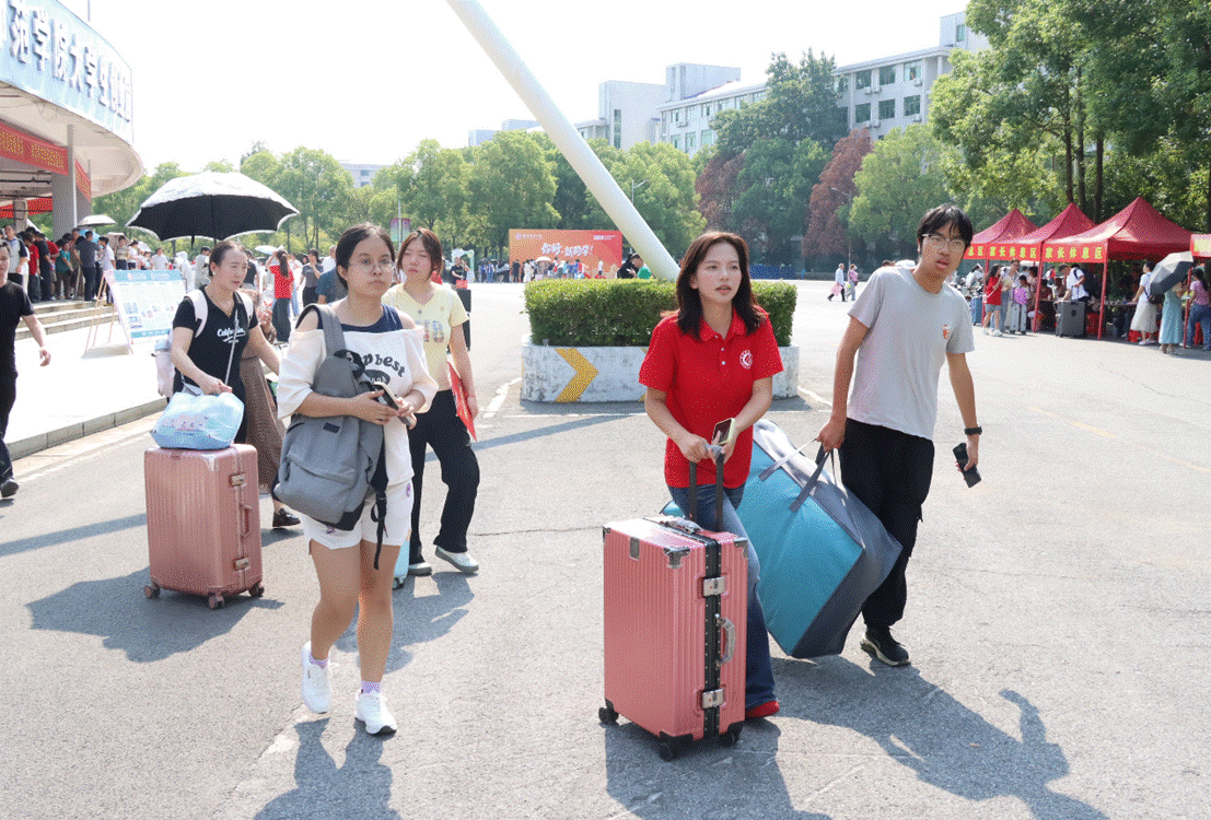 迎新现场,最亮眼的莫过于四处奔波的志愿者们——他们身穿统一服装,早早守在服务台旁,只要看到拎着行李的新生,便立刻上前:“同学,我来帮你!宿舍往这边走。”沉甸甸的行李被稳稳接过,迷茫的路线被清晰指引。即便汗水浸湿衣衫,志愿者们仍坚守岗位,穿梭在校园的各个角落,用热情与责任保障迎新工作顺利推进,成为新生初入校园时最可靠的“引路人”。