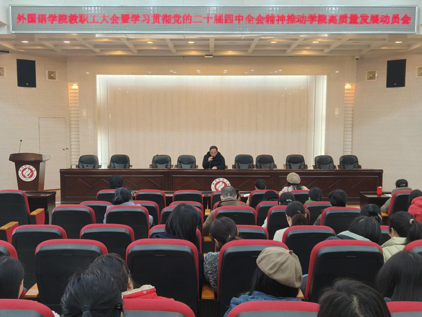 周华指出,党的二十届四中全会为“十五五”时期发展描绘了宏伟蓝图,明确了教育高质量发展的实践路径,与学院的人才培养、学科建设、师资建设息息相关。作为肩负培养高素质外语人才重要使命的教学单位,全院教职工要深刻领会全会核心要义,找准学习与工作的结合点,把思想和行动统一到全会精神和学校、学院的工作部署上来,以全会精神为指引破解发展难题、提升办学质效。