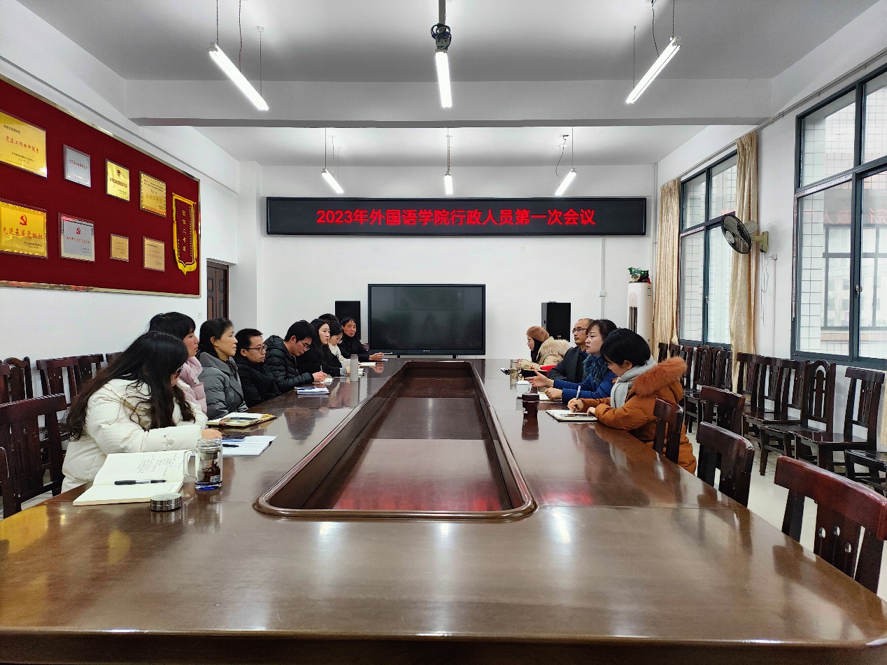 律回春晖渐,万象始更新,为确保新一年的工作开好局,2023年2月13日上午,我院在外语楼南213会议室召开行政人员第一次会议。会议由学院党总支书记贺琴琴主持,全体行政人员参加了此次会议。
