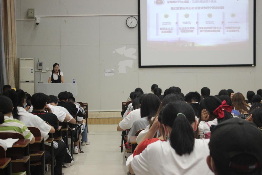 接着,唐艳从党史、新中国史、改革开放史和社会主义发展史中撷取丰富鲜活的例子,并结合大学生的学习生活、时代使命来阐明伟大建党精神的丰富内涵和领会伟大建党精神的重大意义。“唯有精神上站得住、站得稳,一个民族才能在历史洪流中屹立不倒、挺立潮头。”唐艳深情地说道。