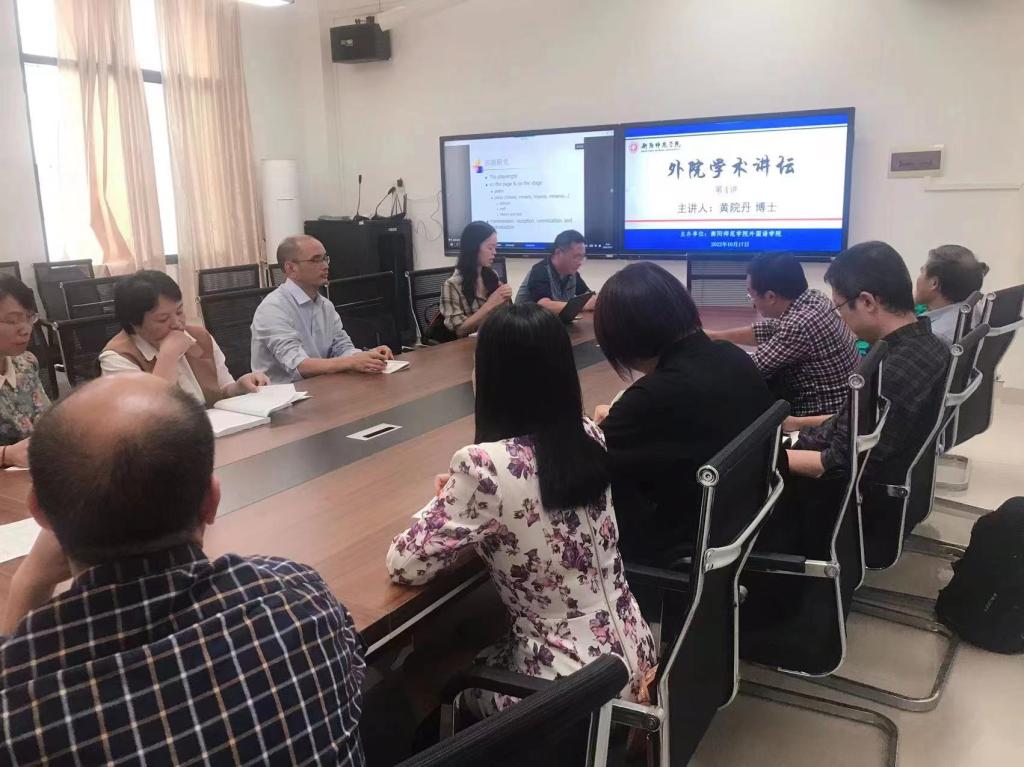 除汇报个人莎士比亚的研究成果之外,黄院丹博士还介绍了自己博士论文的选题过程,并与在座教师探讨了文学研究如何可持续发展的问题。报告引起了在场听众的热烈讨论,大家就从叙事学、语料库、多模态、认知诗学等研究角度推进莎士比亚和其它作家的研究与黄博士进行了充分交流。此次报告开拓了听众的学术视野,激发了大家推进我院学术研究尤其是英美文学研究的热情。
