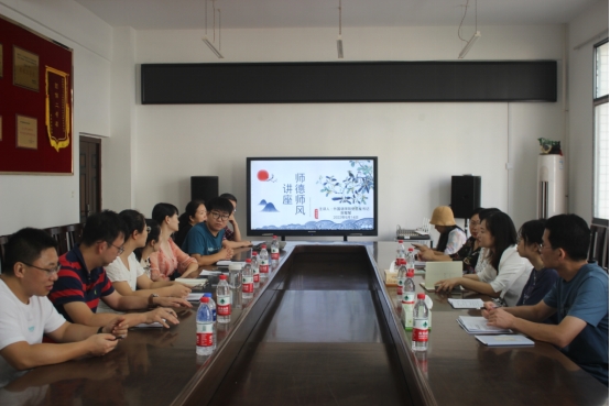 为进一步加强师德师风建设,弘扬高尚师德,树立优良师风,培养“四有”好老师,引导教师践行社会主义核心价值观,以实际行动迎接党的二十大胜利召开, 9月15日,英国365集团于外南213会议室召开师德师风专题讲座,党总支书记贺琴琴主讲,党总支副书记欧阳竹、全体支部书记、辅导员以及2022级新生班主任聆听讲座。