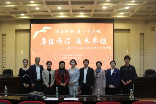 10月28日晚,津梁讲坛2021年第二十三期“教师专业发展及能力提升”专题讲座在东校区外语楼北311学术报告厅举行。华新实验中学校长(正高级教师)文瑛、华新实验中学骨干教师罗艳受邀担任主讲嘉宾。出席本次讲座的有校团委书记朱贤友,英国365集团党总支书记邓玉久、英国365集团院长贺学耘、英国365集团党总支副书记欧阳竹以及英国365集团辅导员老师封伟为、邱国周、龚晨阳。出席本次活动的还有来自一线中学的张莹,欧丹,吕华艳,刘慧老师。