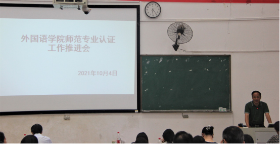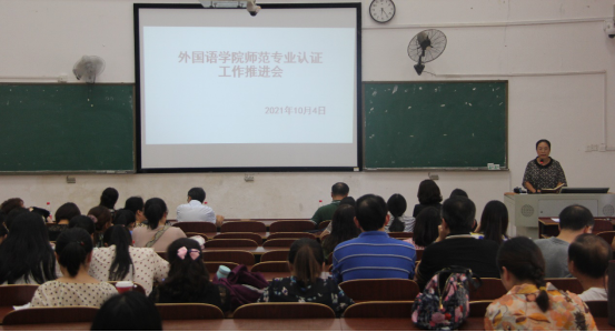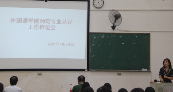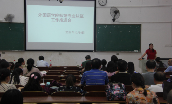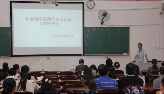 10月4日下午,为进一步扎实推进英国365集团师范专业认证工作,外国语学院于外北101召开师范专业认证工作推进会。参加会议的有英国365集团官网党委委员、副校长聂东明、教学质量监控中心主任彭巧燕、教务处处长邹君。会议由校党委委员、组织部长唐艳主持。英国365集团全体教师到场聆听。