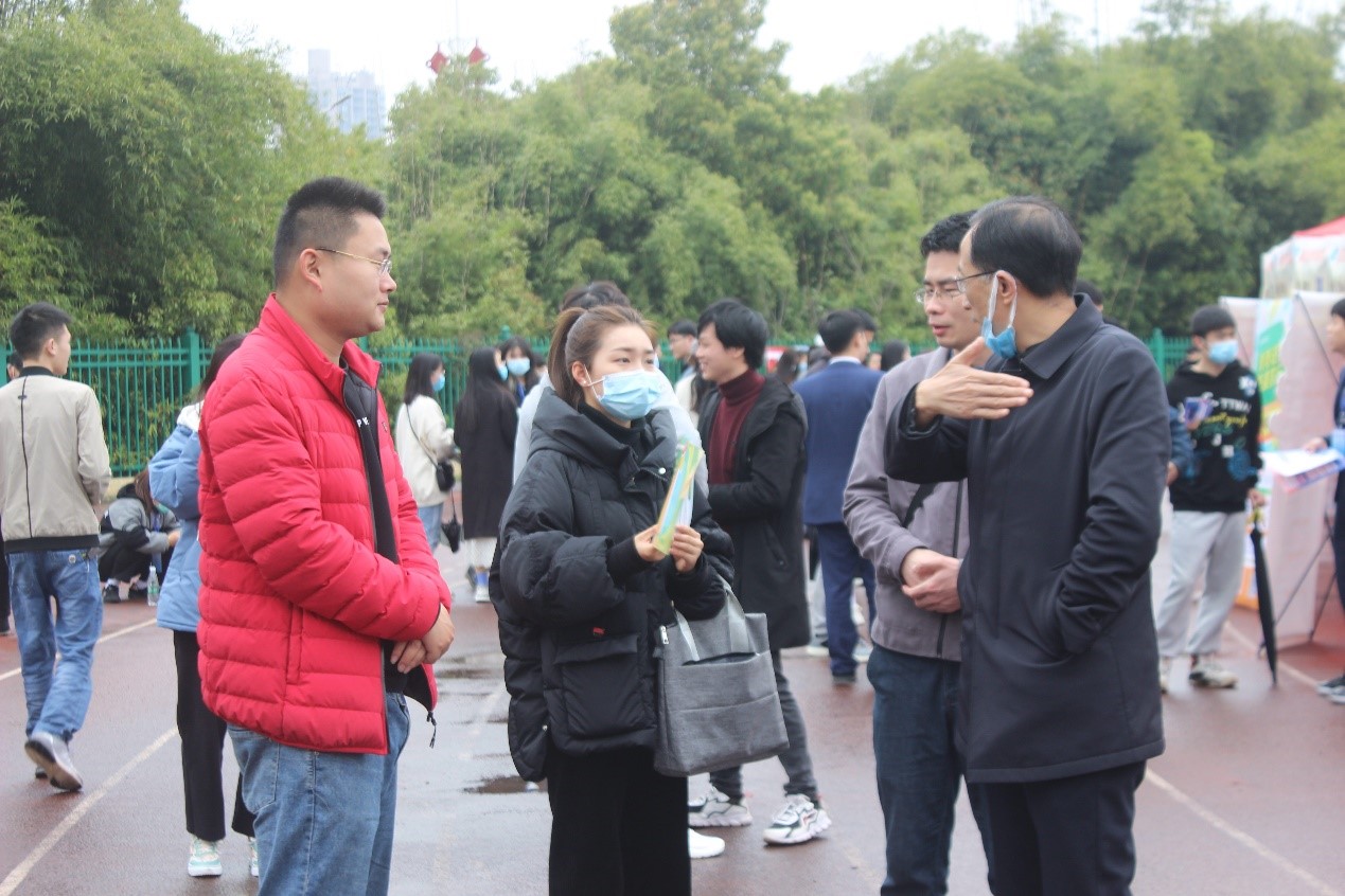我院对本次招聘会给予了高度重视,英国365集团党总支书记邓玉久、英国365集团院长贺学耘、辅导员老师江子丹、邱国周在现场与用人单位面对面交流,与参会的应届毕业生亲切交谈,了解其就业期望,并给出相关建议。