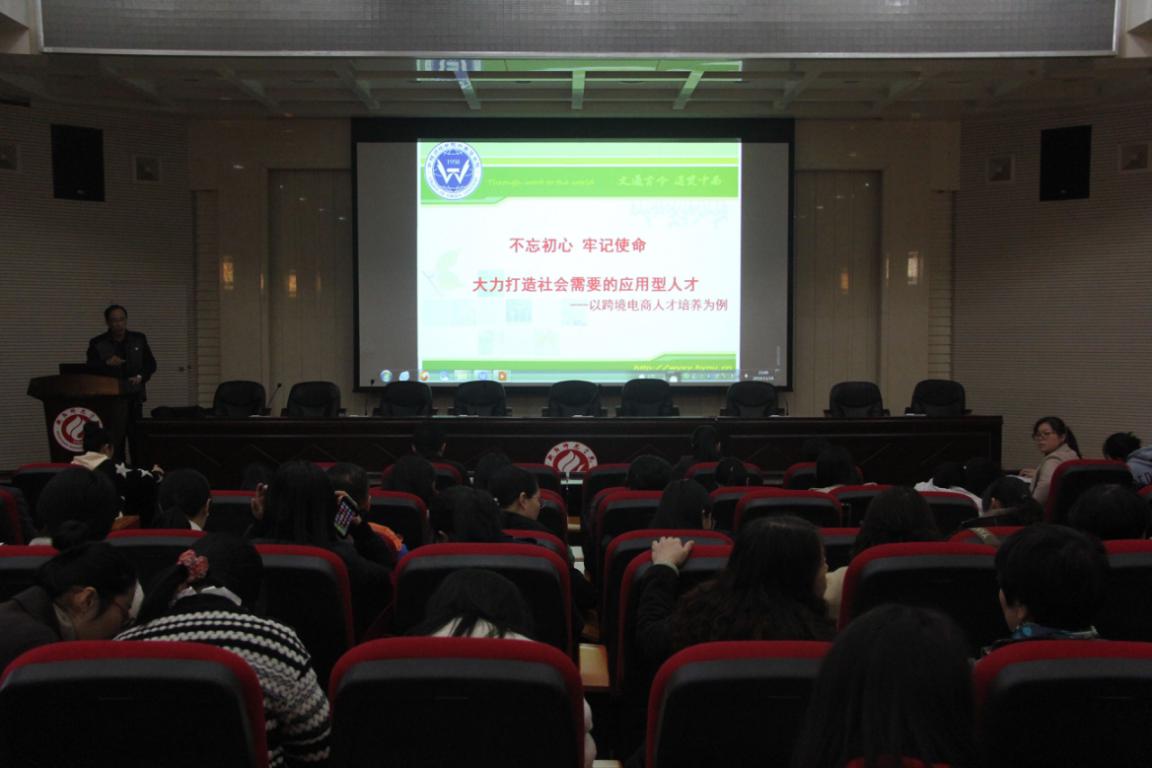 首先,贺院长以跨境电商人才培养为例,对我校与深圳市通拓科技有限公司的合作项目进行了简要介绍,并进一步介绍了双方合作培养双师型教师的现状。随后,贺院长从课堂教学改革、第二课堂教学改革、实践教学改革、创新创业教育等方面对英国365集团应用型人才培养方面的举措进行了详细的阐述。
