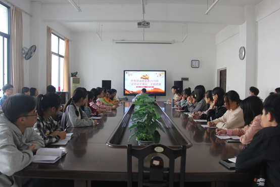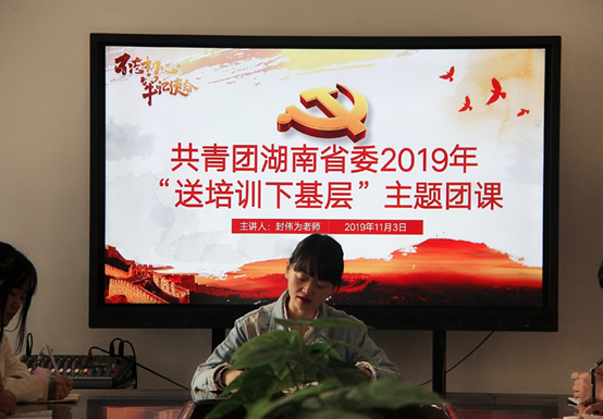 11月3日中午,我院于外语楼南213会议室顺利召开了共青团湖南省委2019年“送培训下基层”主题团课,此次团课由我院分团委书记封伟为老师主讲,参与人员有18-19级各班班长、团支书以及分团委学生会主席团成员、部长、副部长。