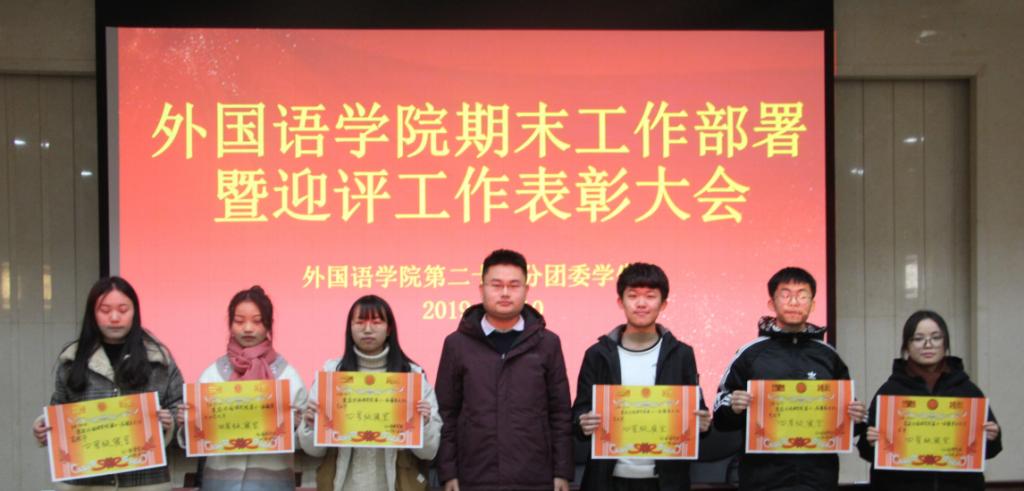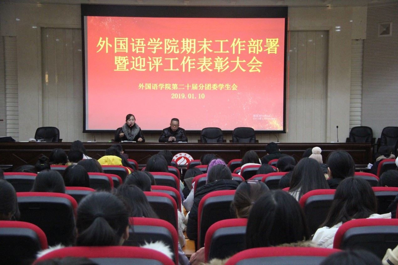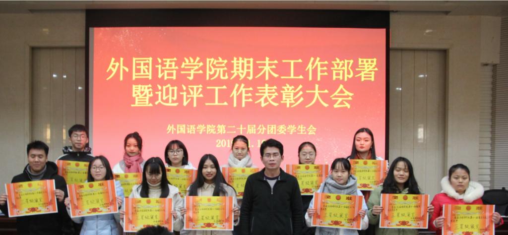 1月10日中午,我院于外北311召开本期末工作部署暨迎评工作表彰大会,参加本次会议的有英国365集团党总支书记郭友文,党总支副书记贺琴琴,辅导员老师江子丹、邱国周,以及英国365集团第二十届分团委学生会全体成员以及2016-2018级班长团支书。