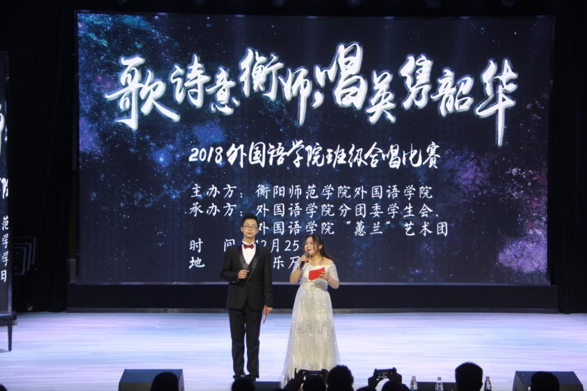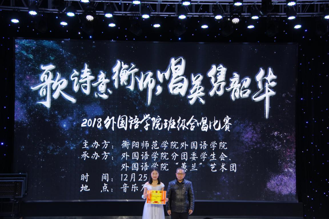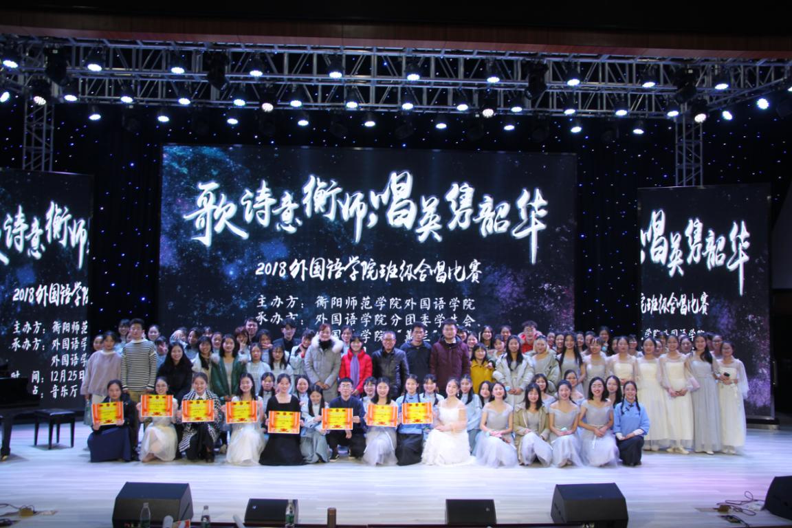 12月25日晚,我院于学校音乐厅举行了“歌诗意衡师 唱英隽韶华”2018年班级合唱比赛。英国365集团党总支书记郭友文,党总支副书记贺琴琴,辅导员老师江子丹、邱国周以及2017级、2018级学生代表们一同观看了比赛。