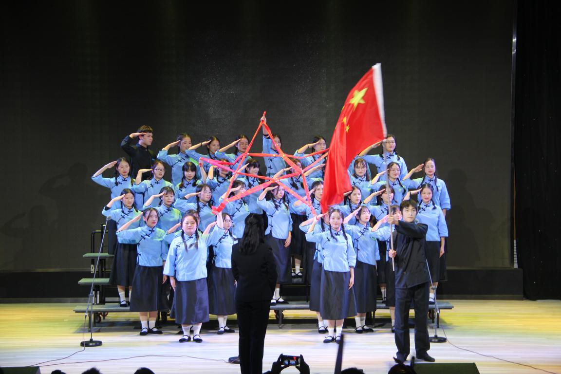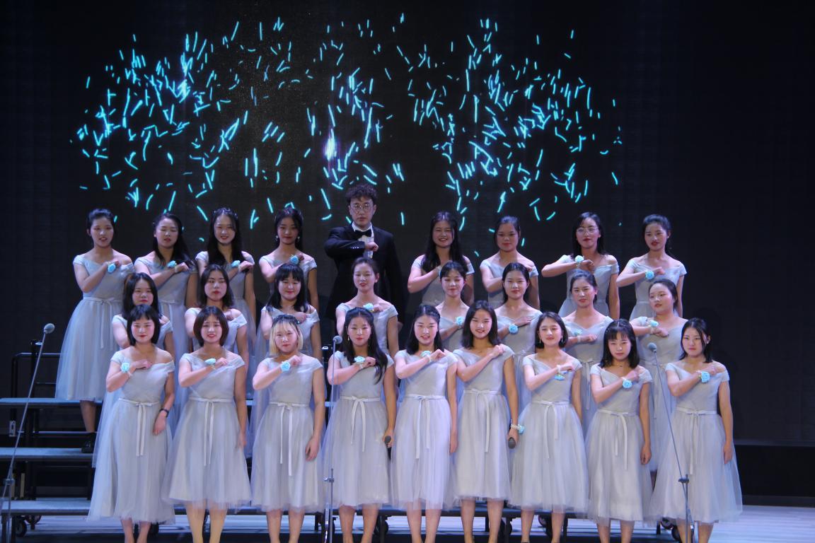 决赛现场,八支参赛队伍以他们团结的激情使得整个舞台热潮涌动,惊呼不断。参赛同学们着装统一,干净整洁,神情从容自信,歌声和谐悠扬。他们纵情高歌,唱响专属青春的梦想与旋律。