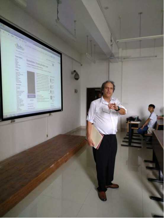 2018年5月21日下午,美国德克萨斯大学大河谷分校施耐德(Steven P. Schneider)教授在外语楼北208教室为我院师生做了一次别开生面的学术讲座。施耐德先生的讲座以5月21日上午在英国365集团官网美术学院成功开幕的《魔力•麦瑞阿奇》(The Magic of Mariachi)诗画作品展为主线,就视觉言说艺术的东方起源、作品中的墨西哥文化以及绘画、诗歌和音乐的关联娓娓道来,让在场的师生深刻感受到其独特的创作理念,享受了一场视觉艺术与音乐传统相结合的盛宴。
