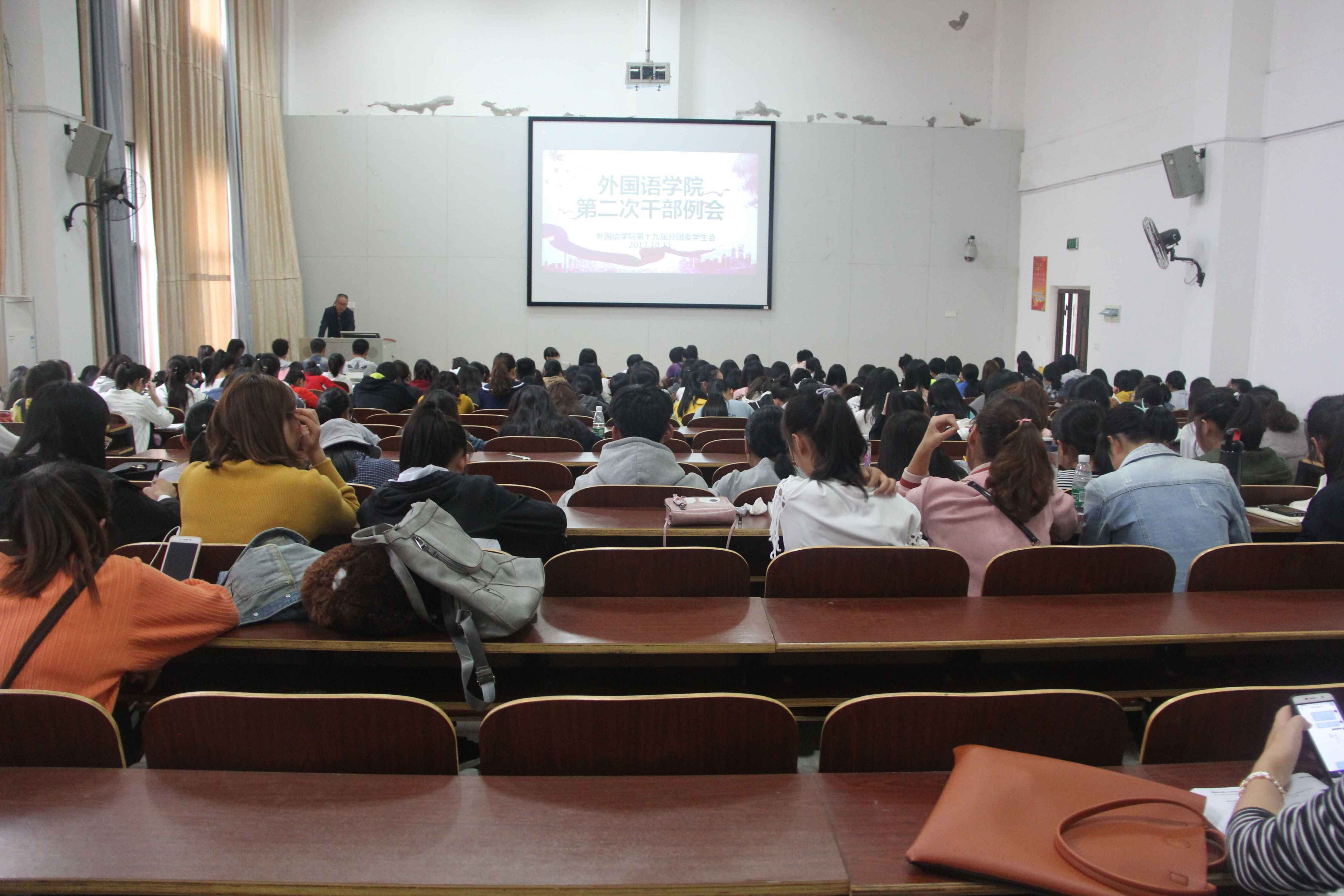 2017年10月11日中午1点,英国365集团本学期第二次学生干部例会在外北110召开。参加此次会议的有英国365集团党总支书记郭友文、英国365集团党总支副书记贺琴琴,辅导员老师江子丹、封伟为、邱国周、张倩,英国365集团第十九届分团学生会全体干部和14—17级各班班长及团支书。