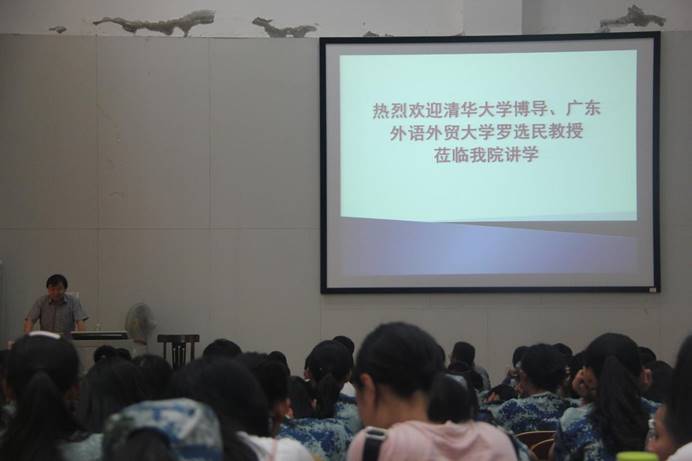 讲座尾声,郭友文书记做总结发言,他说,今天下午罗教授给我们上了一堂生动的励志教育课,罗教授以他个人的亲身经历揭示了一位优秀的外语人才、一位优秀的翻译专家成功的宝贵经验,希望同学们牢记罗教授的教诲,任何时候不畏惧困难,不好高骛远,一步一个脚印地去努力实现自己的梦想。