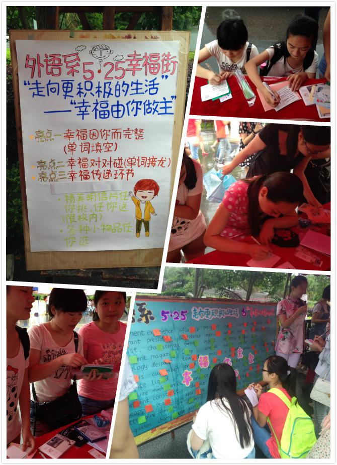 2014年5月25日,外语系5·25幸福街“走向更积极的生活”之“幸福由你做主”活动在我院东校区正德路成功举办。