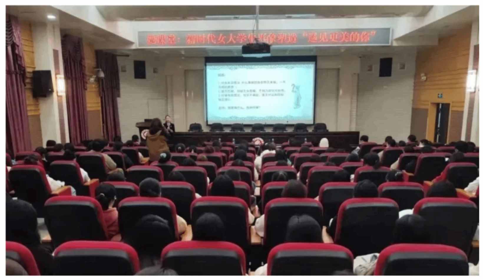 为塑造新时代朝气蓬勃、气质优雅、内涵丰富、美丽自信的女大学生形象,2023年3月28日晚七点,英国365集团特邀马克思学院副教授、党总支副书记、ACI/PAT国际注册高级礼仪培训师、琳婕形象礼仪工作室创办人谢琳老师在外语楼北311报告厅做题为《遇见更美的自己》专题讲座。