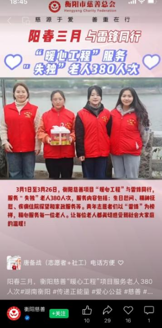 参加位于湖南省衡阳市雁峰区的“衡阳慈善暖心工程”,获衡阳慈善官方媒体报道;