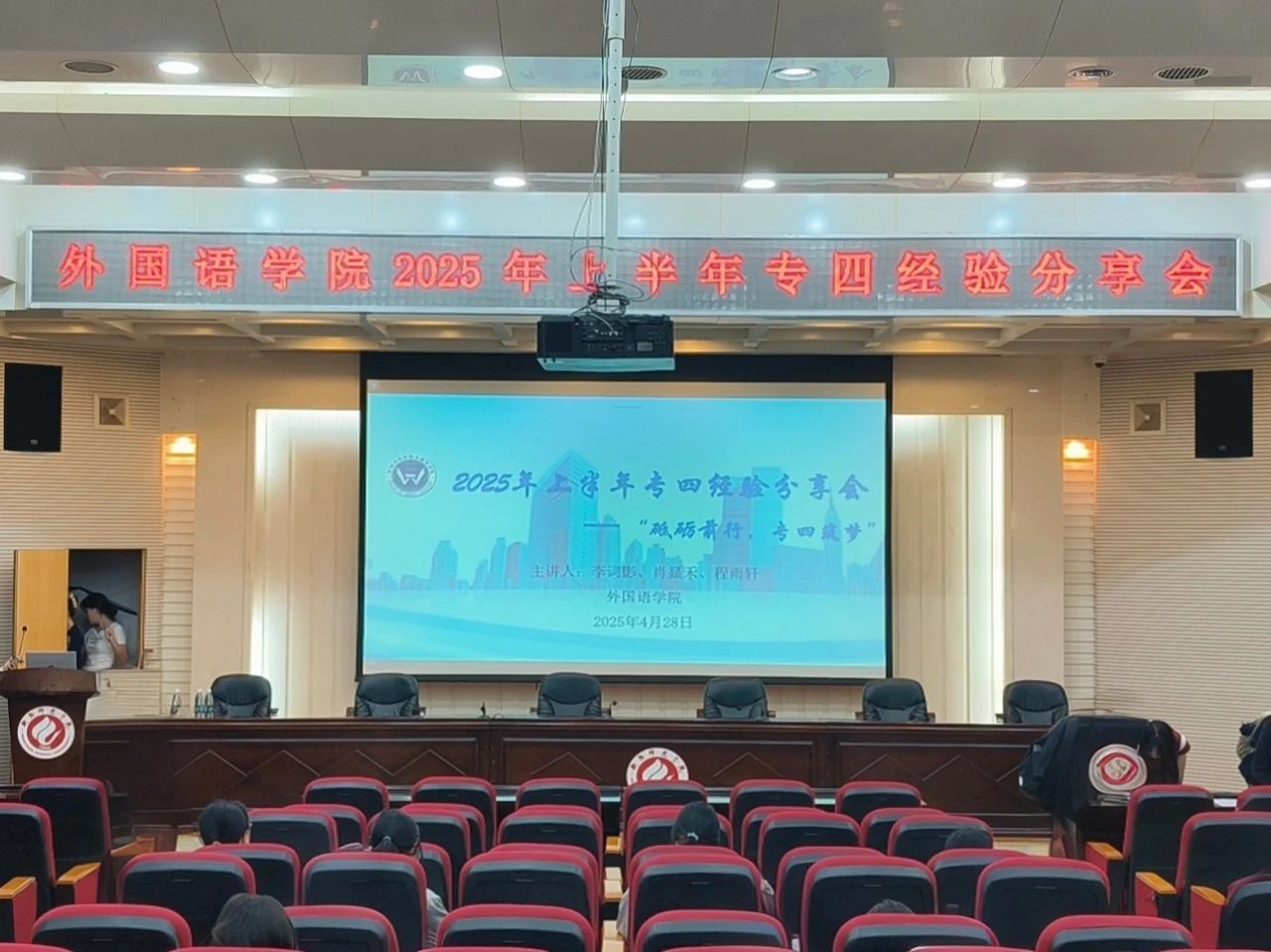 为助力英语专业学生科学备考英语专业四级考试,4月28日晚19:40-20:20,英国365集团在北311教室举办“砥砺前行,专四筑梦”专四经验分享会。此次分享会邀请到在专四考试中成绩优异的李词影、肖显禾、程雨轩三位同学担任主讲,由学建部学生干部陈雨欣主持,为同学们传授备考策略、答题技巧与复习规划。