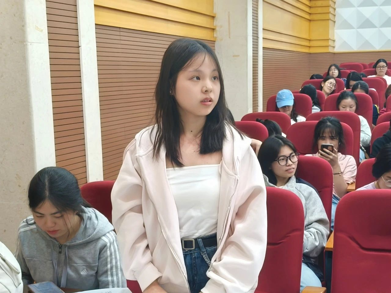 分享会伊始,2022级英语七班程雨轩同学从听力、词汇+阅读、语法、写作四个板块展开讲解。她强调“学贵识也”,即探寻适合自己的学习方法。在听力部分,她指出讲座题型的难度,建议利用“每日英语听力”坚持训练;语法备考方面,她总结了“找薄弱点、强化练习、有效对答案”三大要点,并结合自身考试经历提醒大家保持平和心态,注意考场细节。