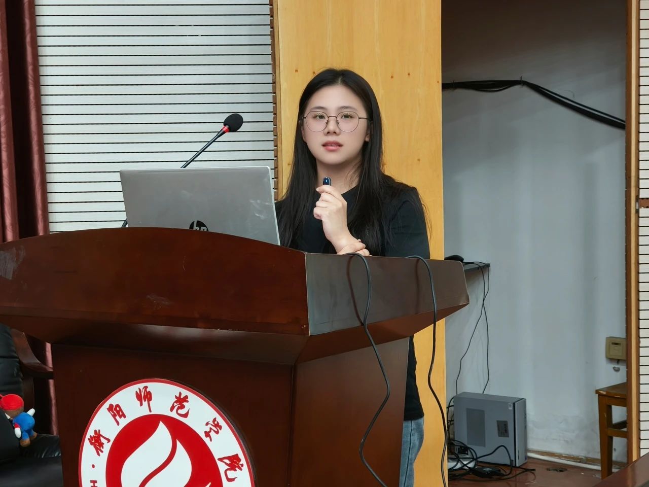 随后,肖显禾同学通过分析专四全国通过率及学院数据,缓解同学们的焦虑情绪。她从听力、语言知识、完形填空、阅读模块深入解读,多次强调真题的重要性,建议大家重视解题思路的理解而非机械套用步骤,练习语法题要注重复盘和细节,做到“求精不求量”。