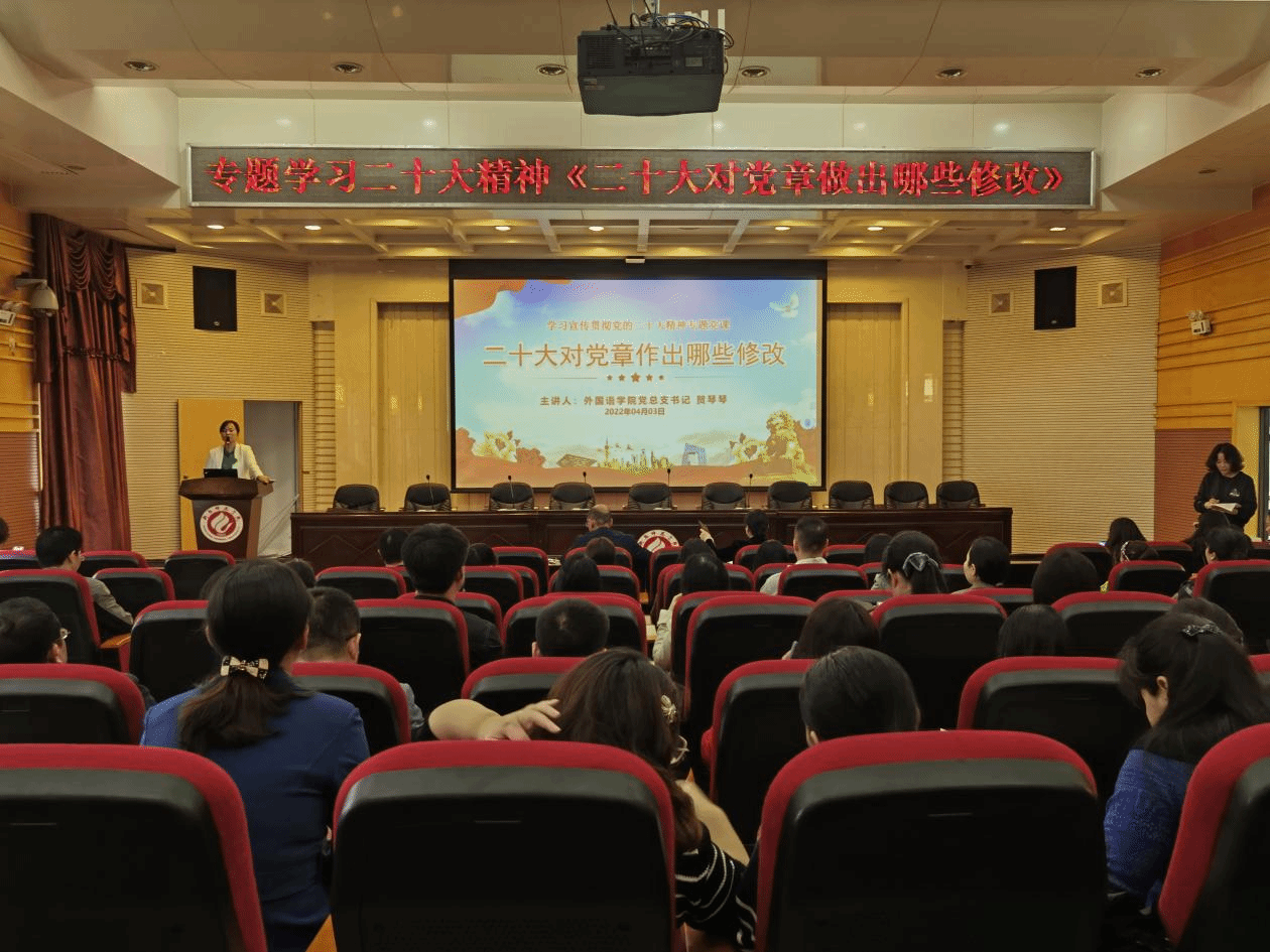 为全面深入学习宣传贯彻党的二十大精神,切实把全院教职工的思想和行动统一到党的二十大精神上来,把智慧和力量凝聚到党的二十大确定的各项任务上来,激发全院教职工为外院的发展奋勇前进的强劲动力,4月3日下午,英国365集团党总支书记贺琴琴在外语楼北311报告厅为我院全体教职工讲授学习宣传贯彻党的二十大精神专题党课。