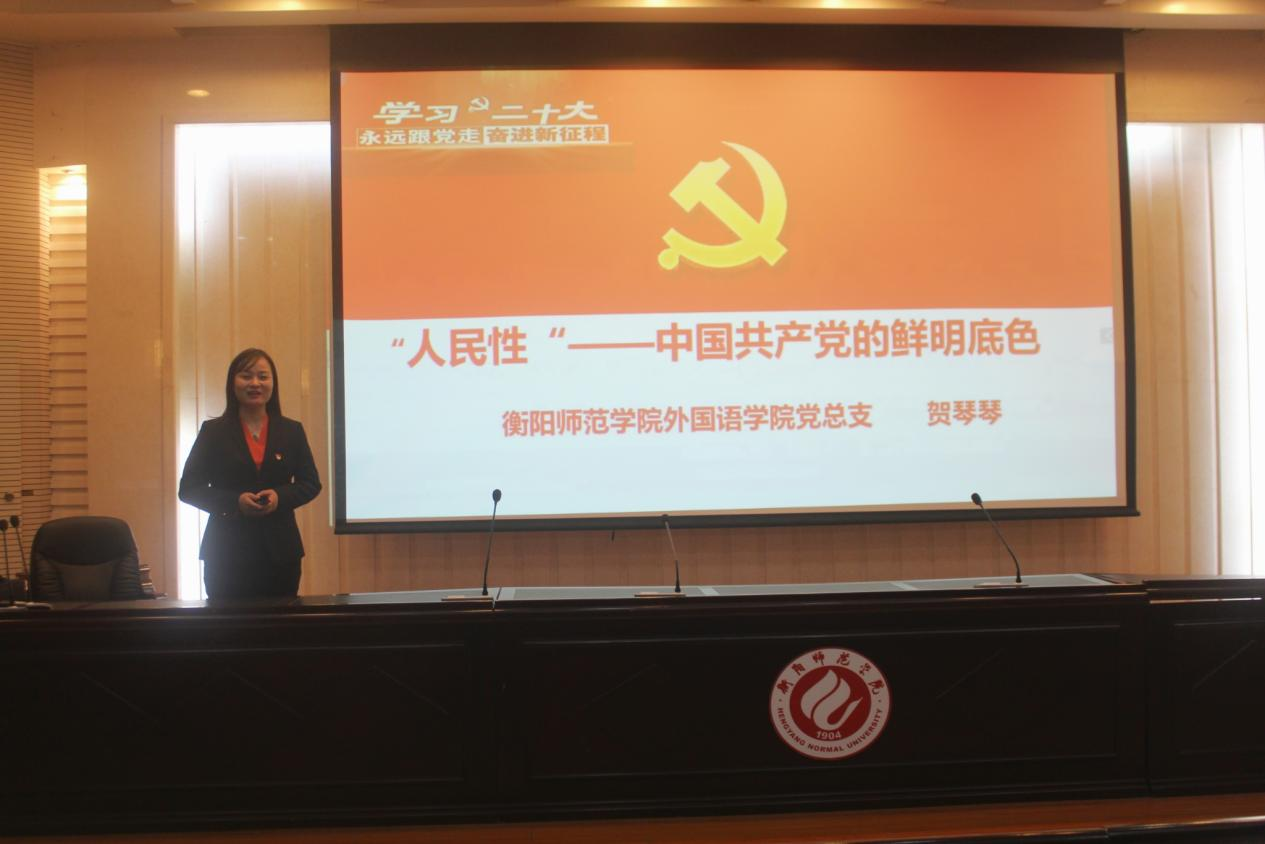 贺琴琴紧扣新时代新征程赋予高校新的历史责任和战略使命,运用生动话语和鲜活案例,围绕党的二十大主题和主要成果、过去5年的工作和新时代10年的伟大变革、马克思主义中国化时代化、中国式现代化、全面建设社会主义现代化国家的目标任务、坚持党的全面领导和全面从严治党、应对风险挑战和教育、科技、人才工作的部署等方面,对党的二十大精神进行了全面宣讲和深入阐释。
