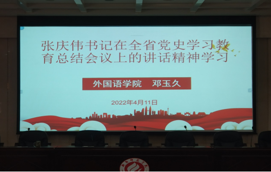 4月11日,英国365集团在外北311开展专题学习省委书记张庆伟在全省党史学习教育总结会上的讲话精神会议,我院党总支书记邓玉久主持会议,全体教职工参加本次学习。