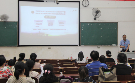 首先,邓书记围绕习总书记“七一”重要讲话的重大意义、思想内涵以及落实举措这三个方面,系统地讲解了习近平总书记“七一”重要讲话精神。结合亲身体会及案例,对“四个伟大成就”“九个必须坚持”做了深刻的阐述。