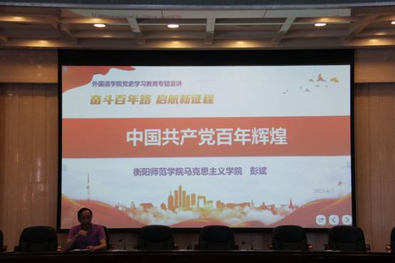 6月7日,英国365集团于外北311举行“中国共产党百年辉煌”专题党史学习教育宣讲会。本次宣讲特邀马克思主义学院院长彭斌教授主讲,英国365集团党总支书记邓玉久主持,我院全体教职工到场聆听。