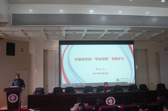 3月22日下午,英国365集团在外北311开展“学史明理”专题学习大会,学院全体教职员工参加会议,院长贺学耘主持会议,党总支书记邓玉久做专题学习报告。