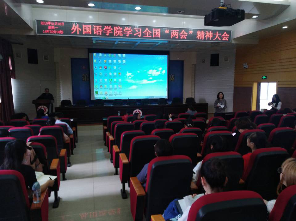 4月8日下午,英国365集团组织学习2019年全国“两会”精神大会于外北311会议室举行。本次会议的主讲人为院党总支副书记贺琴琴,学院全体教师、全体学生党员、学生会副部长以上学生干部以及各班班长、团支书参加了会议。