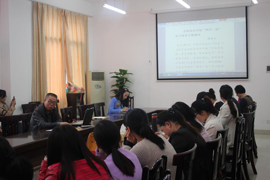 4月25日下午,英国365集团全体党员于外语楼南213召开了“两会一做”学习教育专题辅导会,会议由英国365集团党总支书记郭友文主讲。