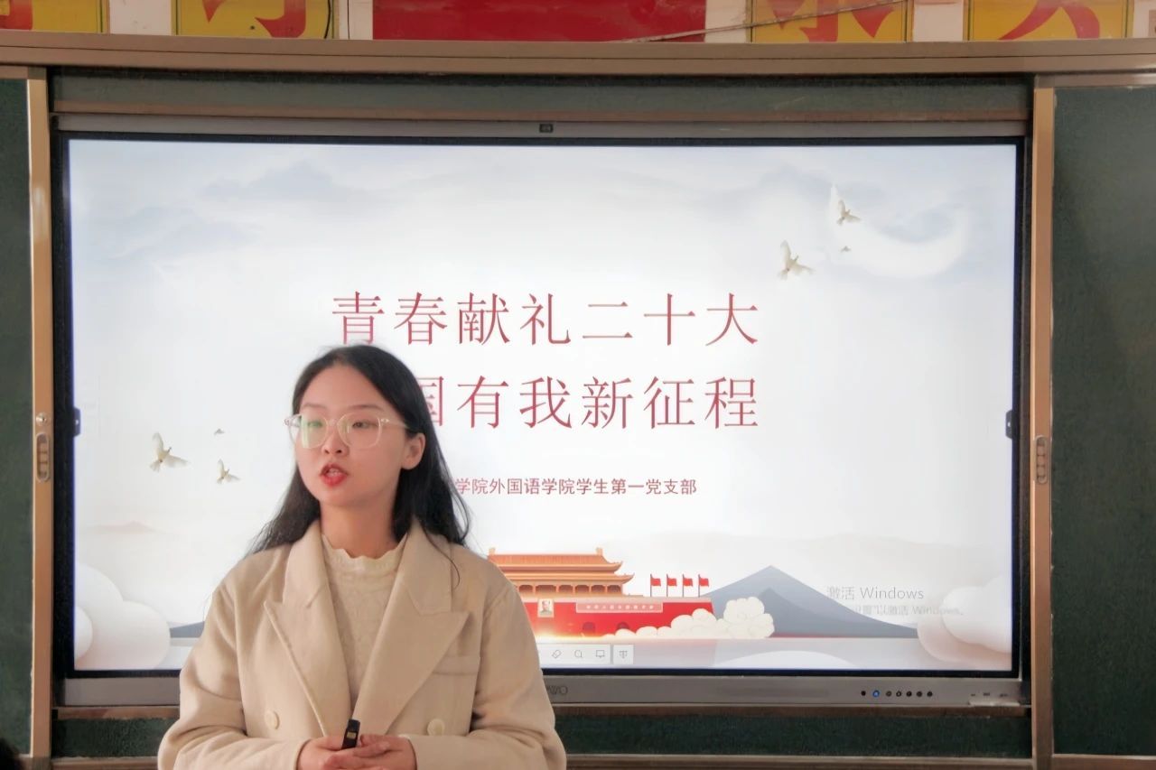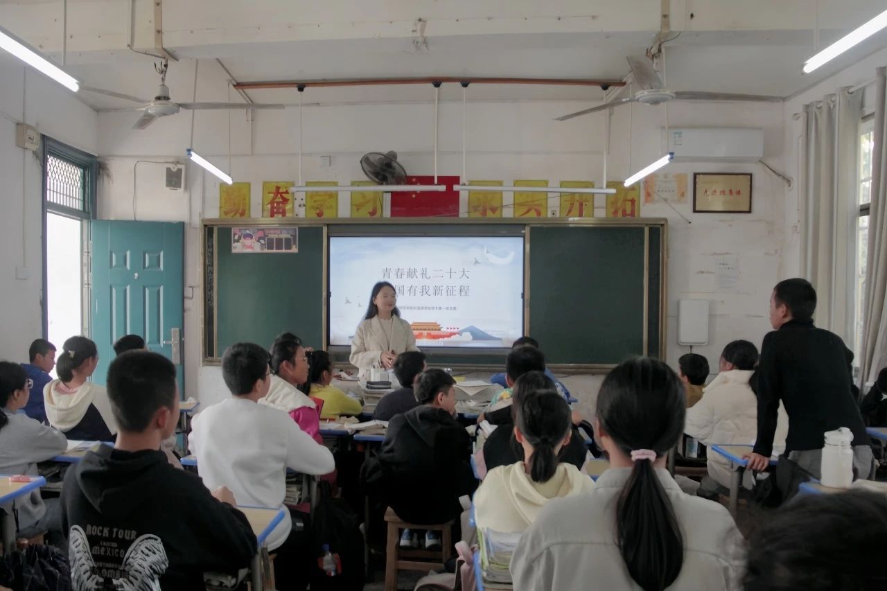 “青雁”支教团成员、学生党员王超和入党积极分子李瑷珈围绕宣讲党的二十大精神,在整体策划、内容设计、授课形式等方面进行创新,用符合青少年学生学习规律的形式,带领同学们科学系统地学习党的二十大有关知识,使同学们理得清、记得住、传得下,在酃湖中学营造了良好的红色文化氛围。