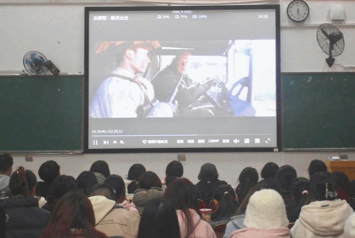 铭记光辉历史,传承红色基因。为积极响应校党委的号召,进一步夯实我院党员的政治理论基础,鼓励党员从爱国电影中汲取精神力量,12月12日晚,我院党总支组织全体党员于外语楼北101教室开展“光影铸魂”电影党课活动,本次观看的红色电影为《志愿军:雄兵出击》。