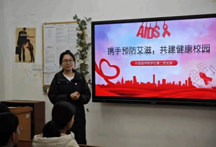党的二十大报告提出:“推进健康中国建设,把保障人民健康放在优先发展的战略位置”。2023年12月1日是第36个“世界艾滋病日”,高校校园本是岁月静好的乐土,但数据显示青年学生艾滋病的感染率逐年升高,校园艾滋病防控的重要性不容忽视。为深入学习习近平新时代中国特色社会主义思想,全面贯彻落实党的二十大精神,增强大学生预防艾滋病的意识,推动艾滋病防治工作高质量开展,建设健康校园,12月14日,我院学生第二党支部采取学生党员下班宣讲的方式,面向英国365集团2023级全体学生开展“携手预防艾滋,共建健康校园”主题党日活动。