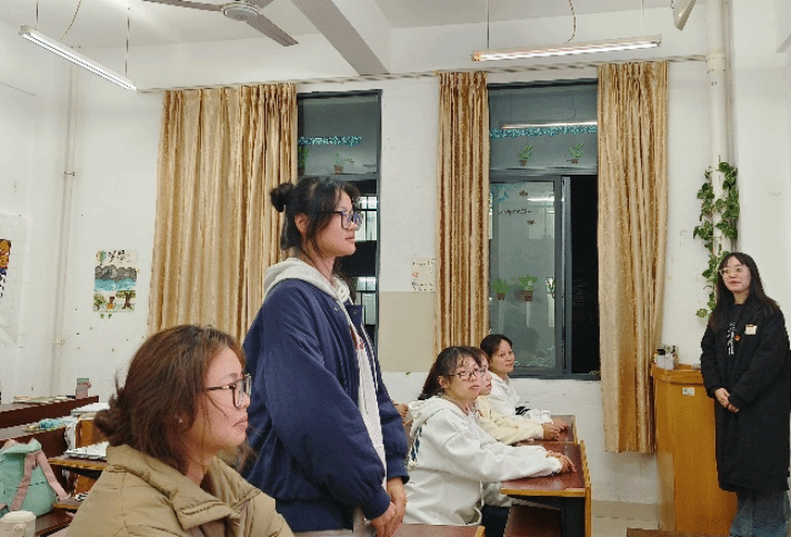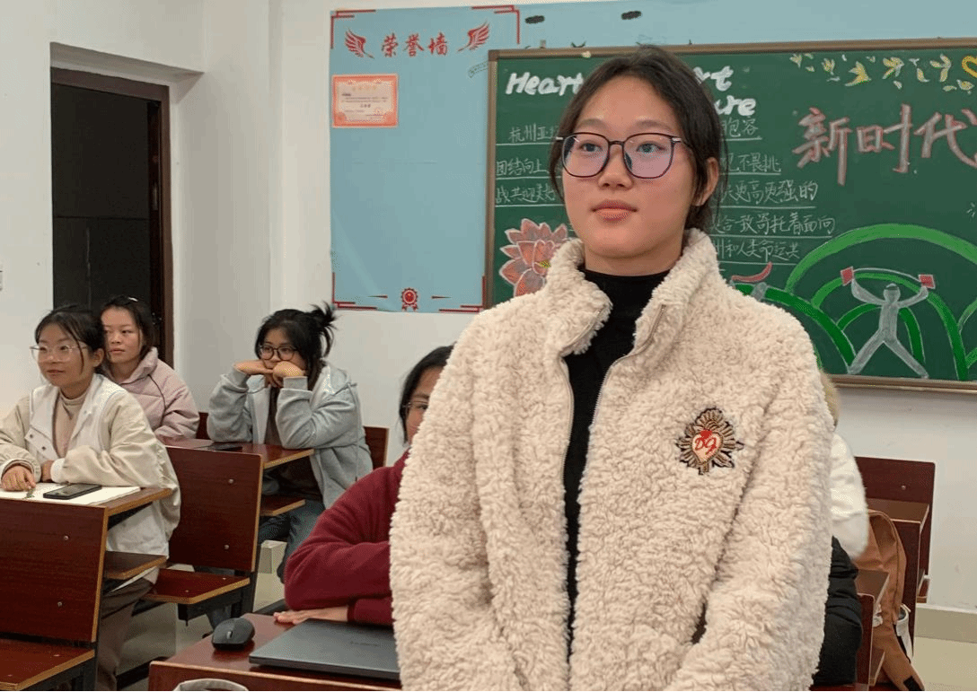 (2023级英语师范3班厉若欣同学在外语楼南303发表感悟)