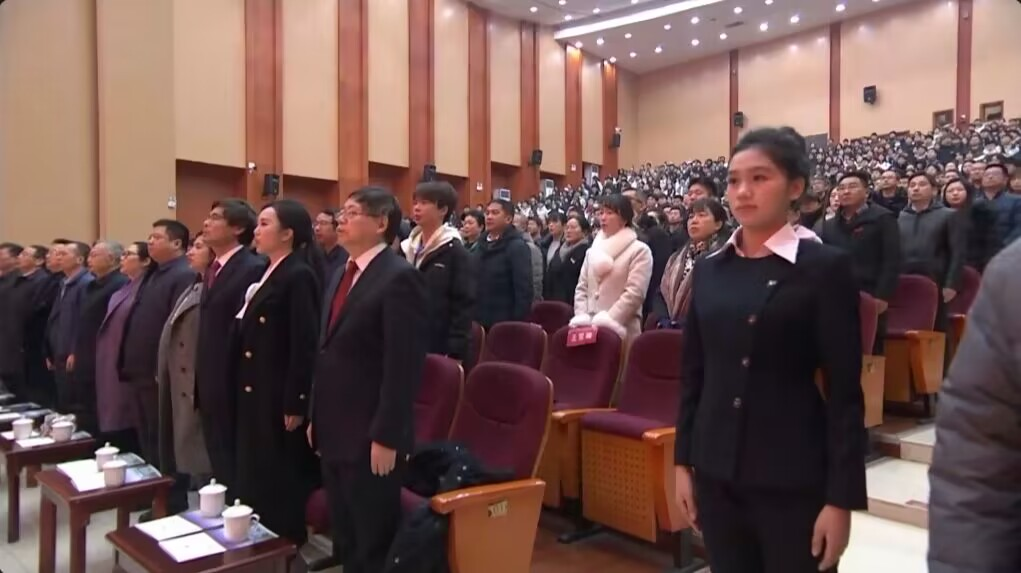 宣讲活动在雄壮的国歌声中拉开帷幕,全体参加人员高唱国歌。