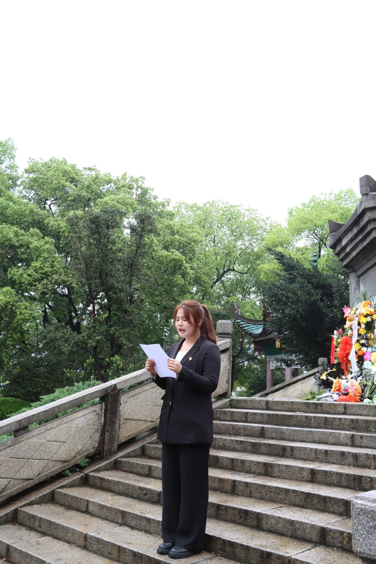 丰碑常在,英雄永存。在巍峨高耸的革命烈士纪念碑下,全体师生怀着对革命先辈的崇敬之情,列队默哀,集体三鞠躬,随后,同学们缓步向前,向革命先烈敬献菊花,寄托哀思,整场活动庄严肃穆。