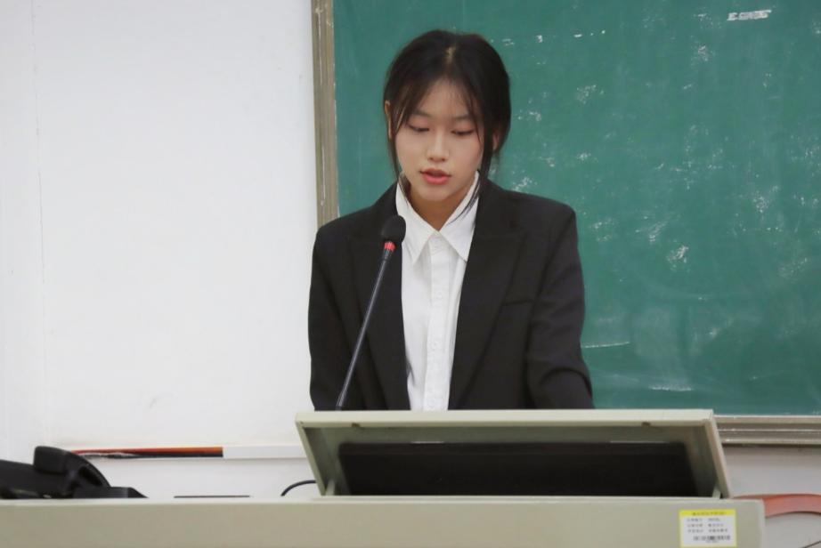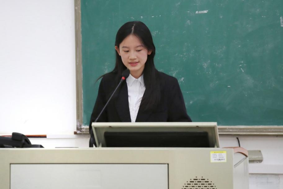 (学生第二党支部书记陈琴在外北104教室主持会议)