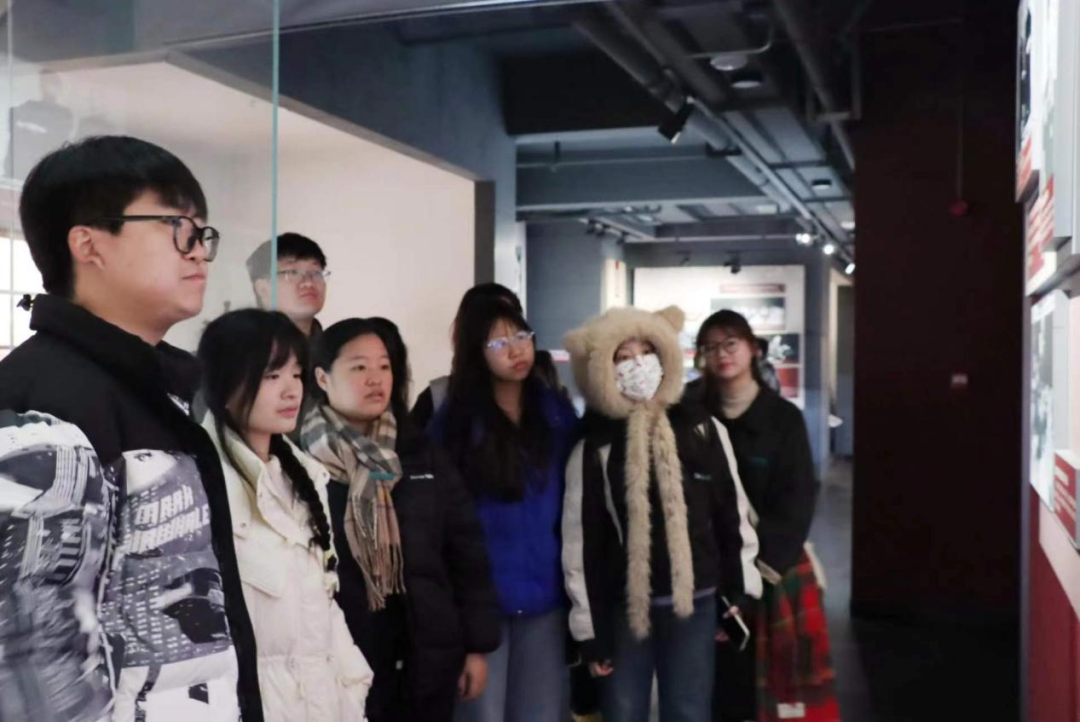 (师生党员认真参观学习)