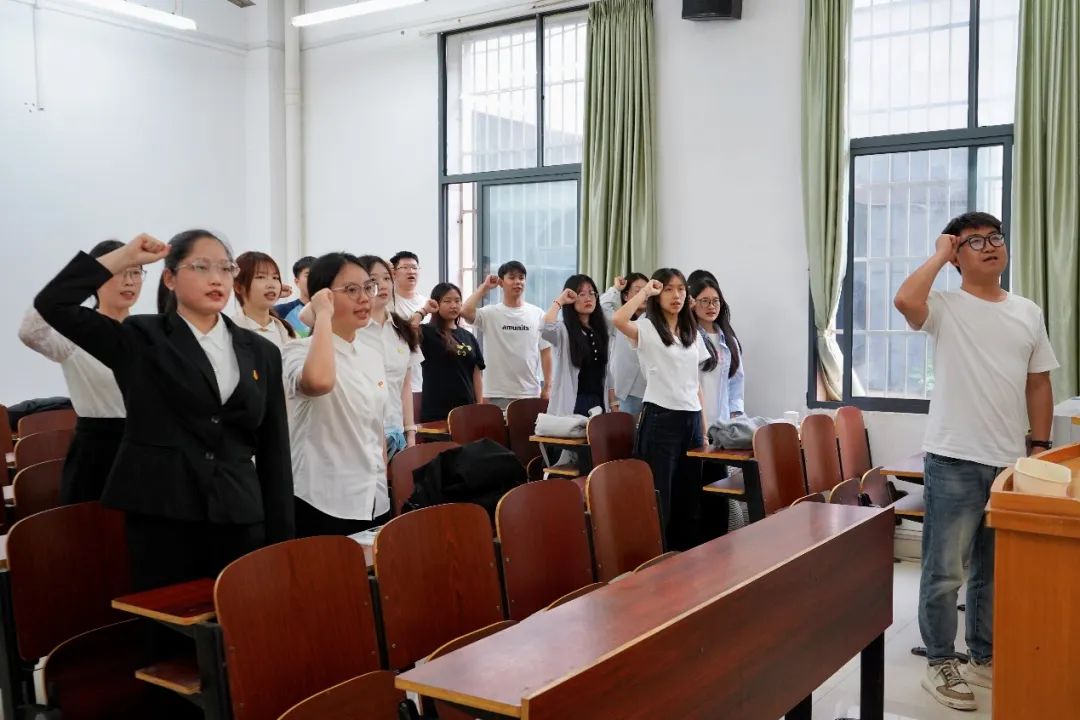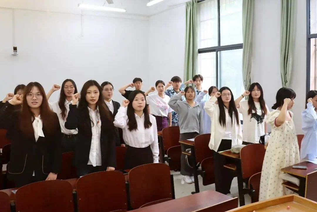 大会尾声,全体党员在领誓人带领下,再次面向党旗庄严宣誓。铿锵誓言回荡教室,他们以坚定信念许下对党忠诚、为共产主义事业奋斗终生的承诺,立志以实际行动践行初心使命。