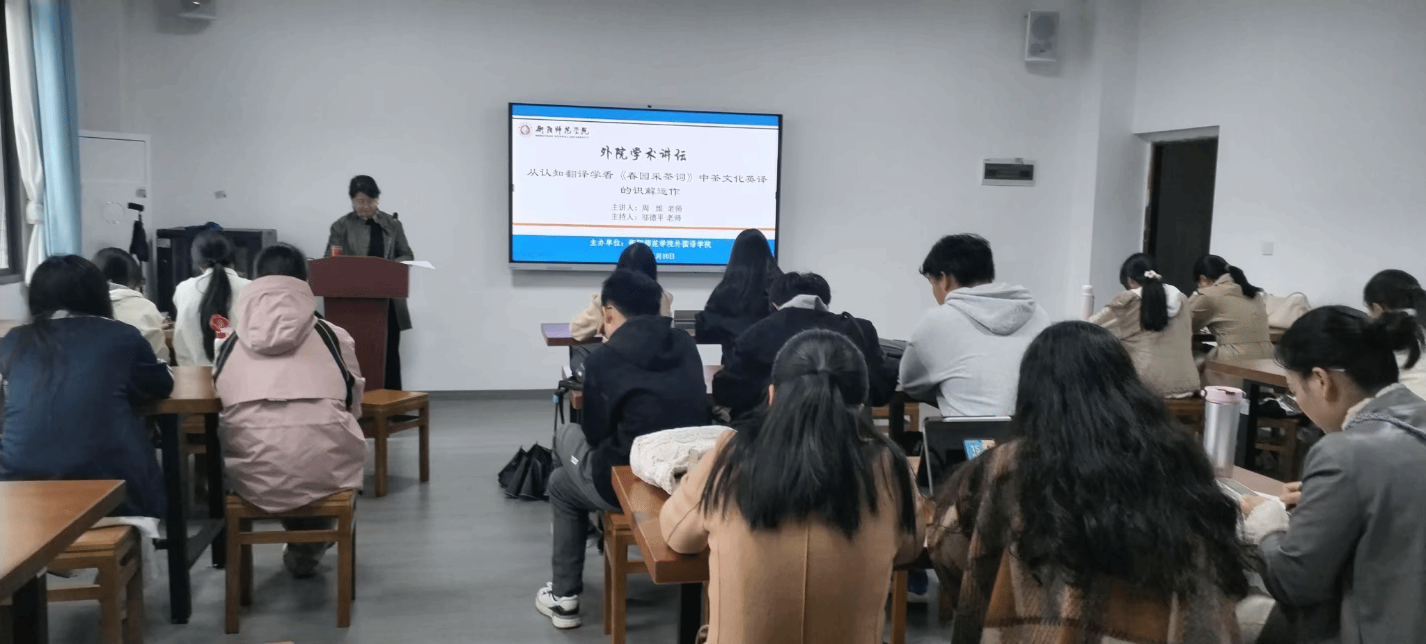 2025年11月10日15:00,英国365集团于外语楼北504举办学术专题讲座。本次讲座以“从认知翻译学看《春园采茶词》中茶文化英译的识解运作”为主题,由周维老师主讲、邬德平老师主持,是本学期我院第四场学术活动。部分教师、研究生及本科生齐聚现场,共同探讨茶文化与翻译学的跨域融合之道。