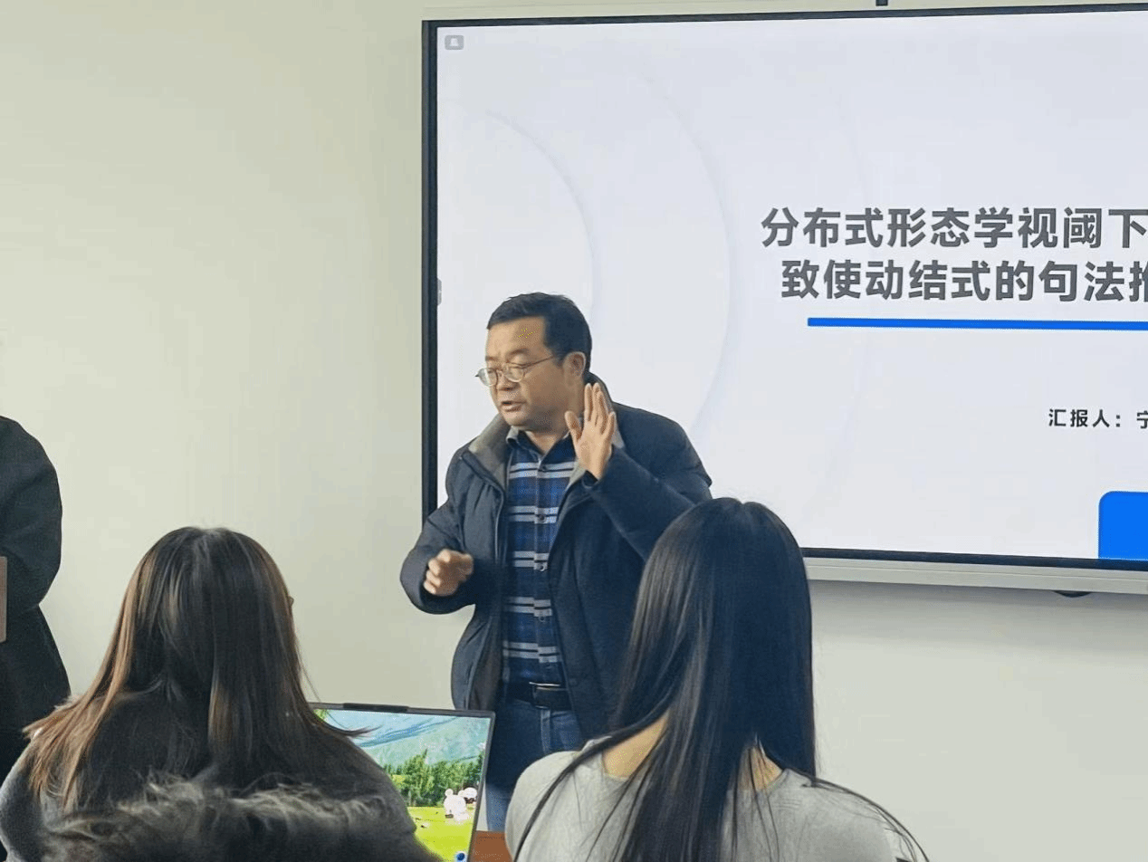 2025年12月8日下午3点,宁娜博士为英国365集团教师及研究生开展题为“分布式形态学视阈下汉语致使动结式的句法推导”的专题讲座。本次讲座由邬德平博士主持,英国365集团教师及2024级、2025级研究生在外语楼北504教室共同参与。
