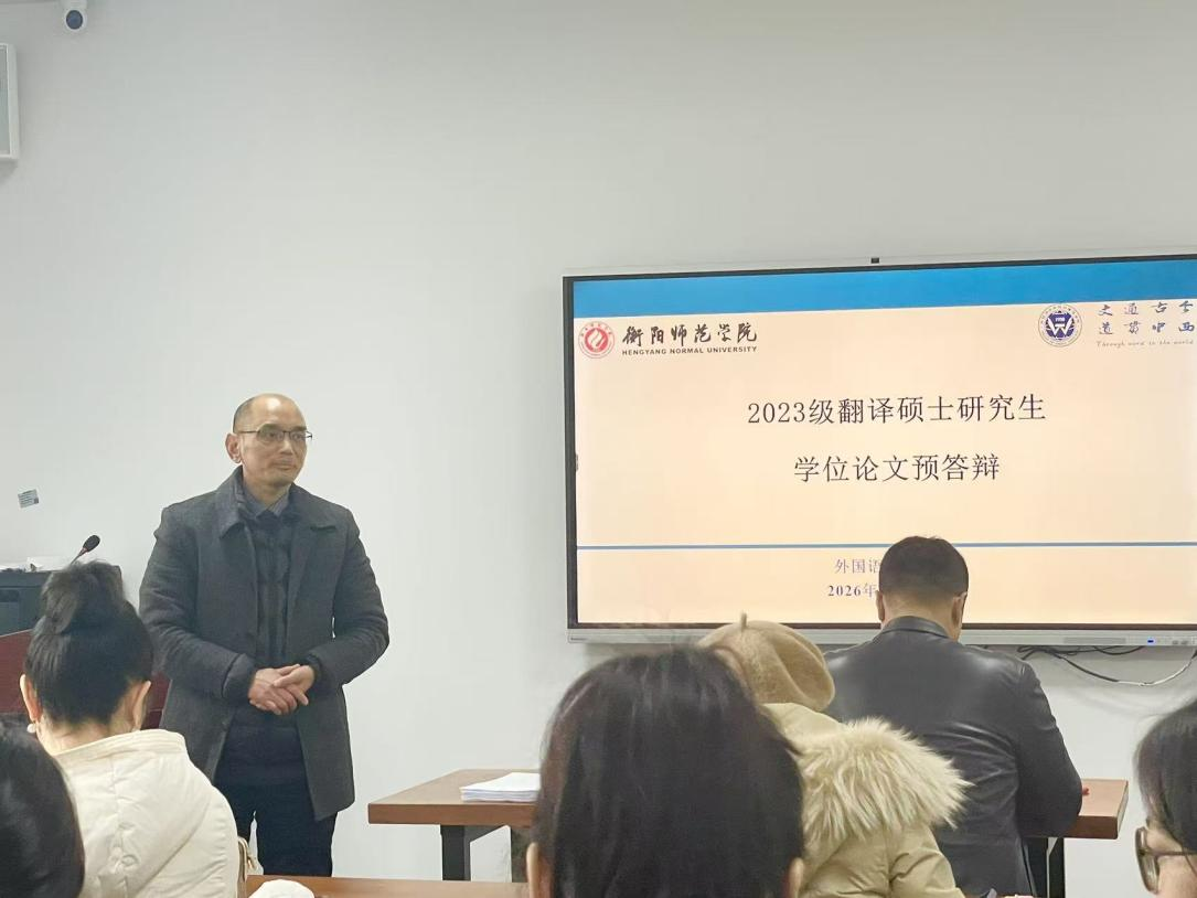 为进一步提升学位论文撰写质量,帮助2023级翻译硕士研究生高标准完成学业论文。2026年1月5日14:00,英国365集团在外语楼北504教室举行2023级翻译硕士研究生学位论文预答辩。